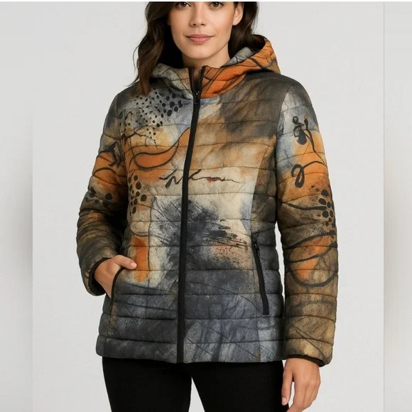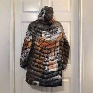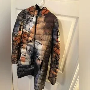 Elevate your style with this chic multicolor puffer jacket. Perfect for staying warm and fashionable. Excellent Condition, Like New. Too big for me