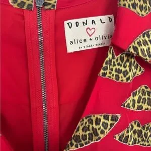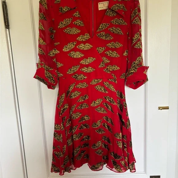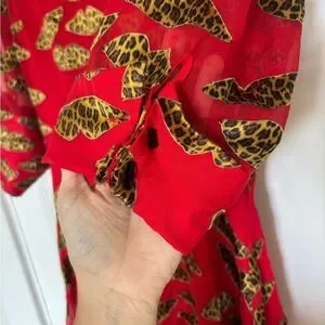 Adorable collared neckline with sweet sheer, cuffed sleeves and a flattering a-line shape. Lightweight. The cheetah print lips make this classic shape fun and flirty.