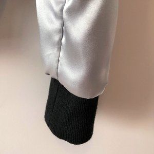 -Black front & back with silvery gray sleeves