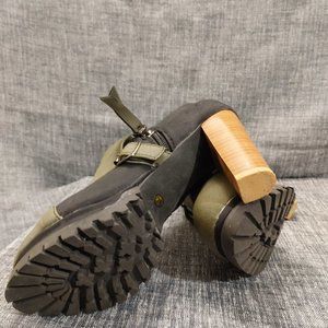 Stylish Used Olive Green/Black Heeled Ankle Booties