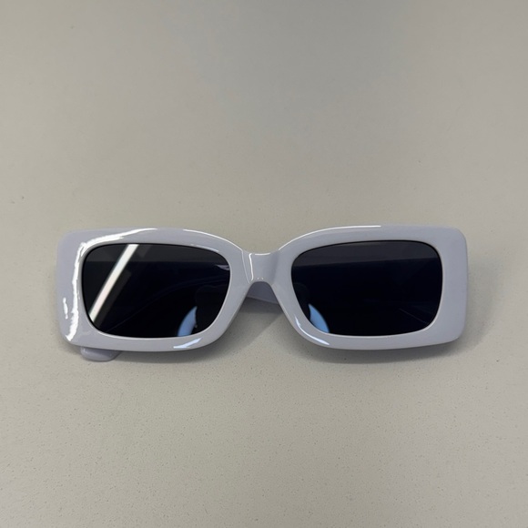 Trendy rectangular sunglasses with a white frame. Perfect for a chic look. Brand new never worn, no scratches in perfect condition.