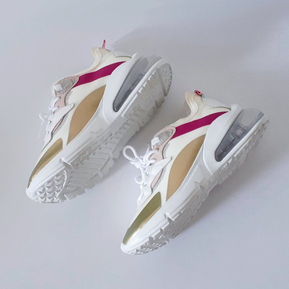 Elevate your style with these chic sample women's sneakers. Featuring a trendy white and pink design, these shoes offer both comfort and flair. Perfect for casual outings or a sporty look.