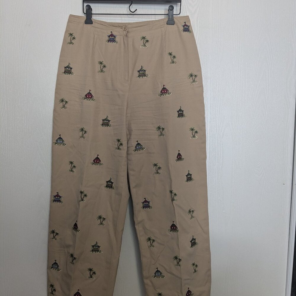 Get compliments everywhere you go with these uniquely stylist Talbots patterned pants, With a loose fit and kitschy summer prints, these were made for your hot girl summer.