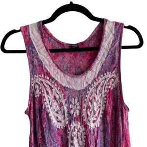 Stylo CANADA Boho Paisley Print Embroidery Sleeveless Midi Dress Pink Purple M/L