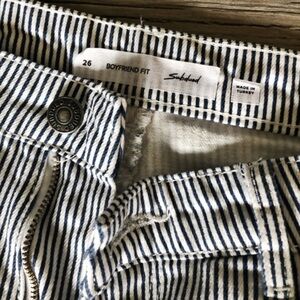 Awesome summer denim, white with navy stripe. Size 26. Absolutely no stretch in these, authentic denim style. Excellent condition, hardly worn. Purchased from Urban Outfitters.