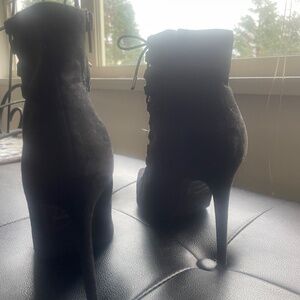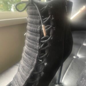Black suede boots, good condition, worn only once. 6 inch heels. These are super sexy worn outside of the jeans.