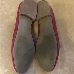 Step out in style with these fun suede loafers. Featuring a chic bow detail, these light burgundy shoes are perfect for any occasion. Excellent condition, except front of toes slightly lightened colour. Not very noticeable can be “brushed”.