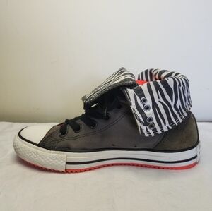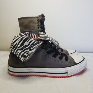 Rare Limited Edition, Black & White Zebra lined foldable rolldown tops, matching green shoelaces, Neon Orange Rubber nonslip Soles, Excellent Condition, Size 6.5, Hight-6 1/2", Length~10"