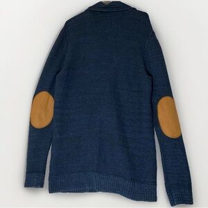 Suede Elbow Patch Blue Shawl Collar Knit Cardigan Sweater M Dark Acadamia Preppy