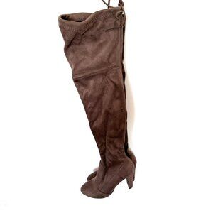 Suede Light Brown Boots Above Knee High with Strings in Back Very Comfortable Size 37 US 7