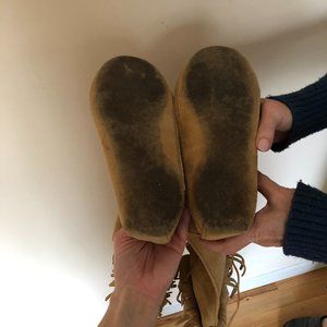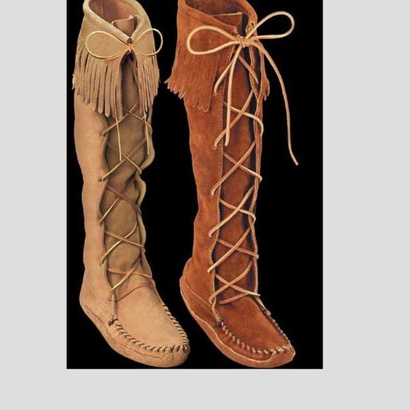 Suede Minnetonka Front Lace Knee High Boot in Tan / Beige color - No longer sold in this color, bought in ~2009.