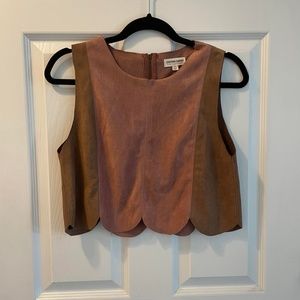 Suede Pink and Brown Scalloped Crop Top