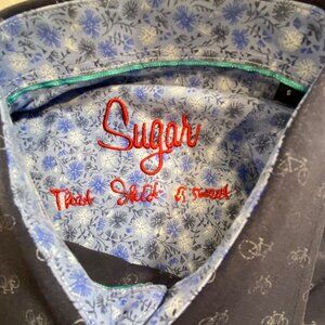 Sugar Mens Long Sleeve Bicycle delicate Print Button-Up Shirt 100% cotton Small