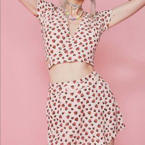 - Strawberry print wrap crop top. A little ballet vibe, a little cottage vibe