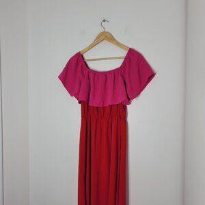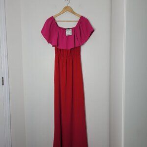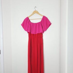 Sugarlips NEW Women's Red Off Shoulder Pink Ruffle Loose Maxi Dress Size S NWT