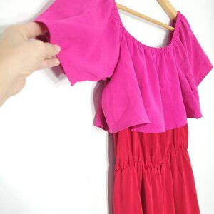 Sugarlips Women's Red Off Shoulder Pink Ruffle Loose cut Maxi Dress Small Size