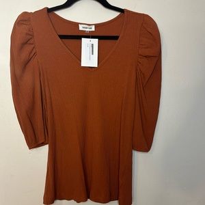Chic ribbed top with puff sleeves. V-neckline. Perfect for casual wear.