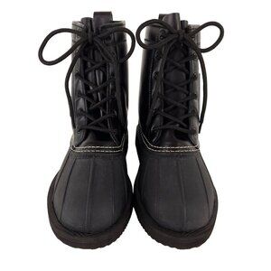 Ankle-high waterproof buffed faux-leather and rubber boots in black.