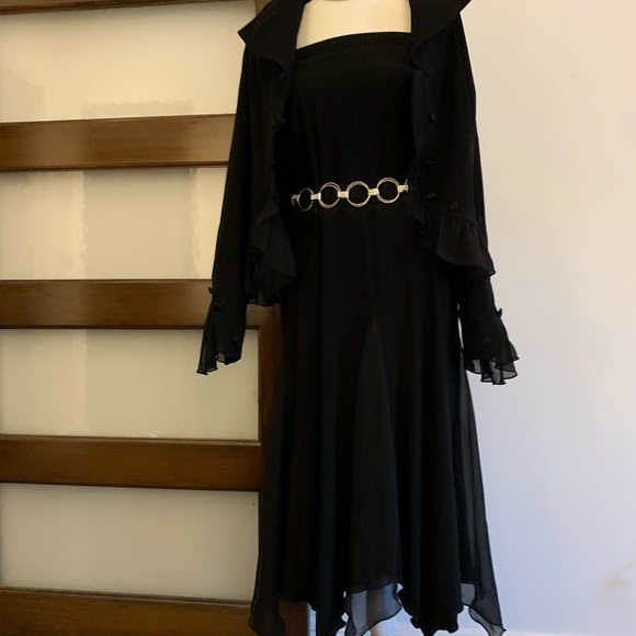 May be worn as a midi dress, with or without jacket. Also as long skirt with or without jacket.Jacket looks great with a pair of pants. Great travelling suit!