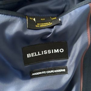 Suit worn twice for a wedding and event. Suit jacket is Bellissimo size 42T. Suit pants are Bellissimo size 38W-32L. Matching set. Bought a year ago. White shirt available- bought from winners.