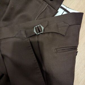 SuitSupply Vigo Wool Dark Brown Trousers. Currently size 32 but can be taken in for a size 30 or taken out for a size 34 thanks to the extra fabric inside.