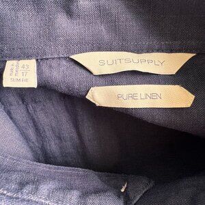 Crafted from luxurious Tessitura Monti pure linen, the Suitsupply Slim Fit Navy Dress Shirt offers lightweight breathability and refined tailoring. Designed in a modern slim fit with long sleeves and clean detailing, this versatile shirt transitions effortlessly from business casual to evening wear. A timeless staple for the sophisticated wardrobe.