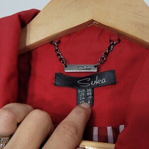 Suka Women's Red Cotton Blend Pockets Zip & Button Details Trench Coat Size XS