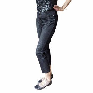 Stretchy black jeans with velvet animal leopard print, Suko Jeans brand. Size 8