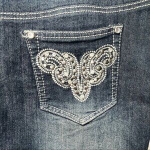 Suko Jeans Denim Skirt Dark Wash Embellished Pockets Size 10
