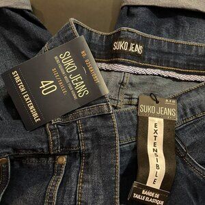 Suko Jeans Men's Stretch Denim Shorts - Size 40 - NWT. 98% cotton, 2% spandex. Style 0258A109ST. 5-pocket jeans style. Rolled hem. Comfort elastic waist. Zip fly.