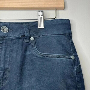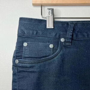 Excellent condition. Faded dark wash. Lightweight denim - cotton/ poly/ spandex blend. Zipper fly. Five pocket style.