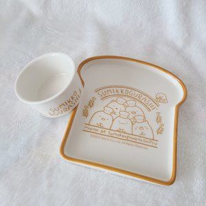 Official licensed San-X Sumikkogurashi merchandise! Enjoy delicious breakfast or afternoon snack on this bread shaped ceramic plate. Comes with a Cocotte dish for your favorite jams or sides!