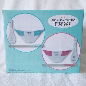 This set includes two ceramic bowls, two ceramic spoons, and two chopsticks!