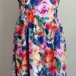 So cute & stylish - beautiful floral roses pattern with a corset style bodice - colourful, cobalt blue, pink, green red