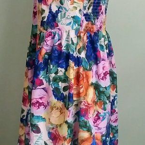 Summer Beach Corset Dress Strappy Colourful Floral Smocked Open Back Light Fairy