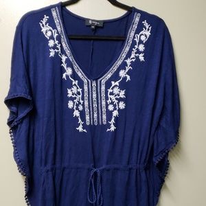 Summer Blue And White Tunic Top With Extendable Waistband- Size Large