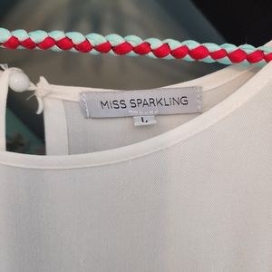 The brand is Miss Sparkling. Worn once. smoke free home.