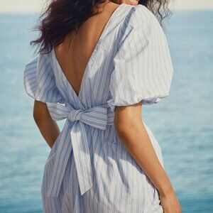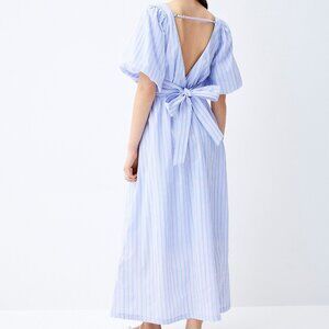 Summer Evenings Poplin Bowtie Dress Patterned Blue 100% cotton