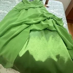 Custom made never worn green wedding guest dress. Beautifully lined, elegant draping and delicate embellishments. Perfect for a summer wedding or formal event.