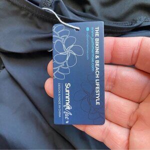 Summer Mae Maternity Swim Dress 2X Black Ruffle Skirt Biker Short Bra Modest NEW
