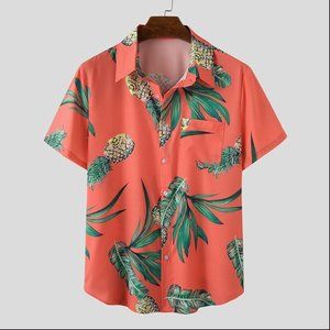 Summer Men Printed Sets Short Sleeve Lapel Beach 2 Pieces Streetwear