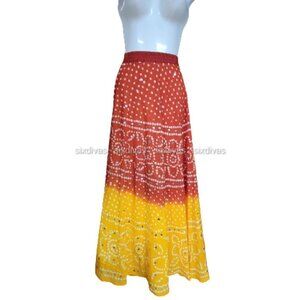 #Bandhani Tie Dye Ethnic Wear Bandhej Sequins Skirt Maxi Skirt Hippie Cotton Flare Ethnic Traditional Boho Elastic Waist Mirror Sequins Dancing Indian Skirt