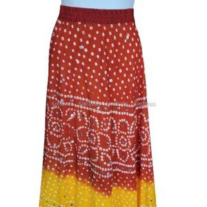 Beautiful Elastic Waisted Reddish and Yellow Skirt with Mirror Sequins
