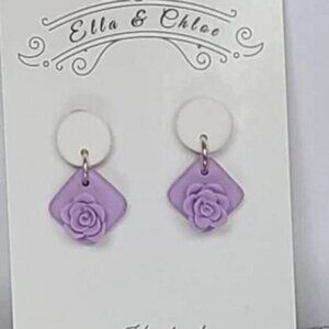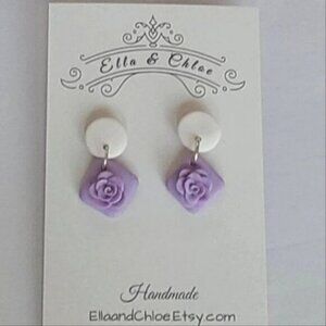 Summer Spring White Purple Colourblock Clay Floral Drop Flower Dangle Earrings