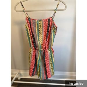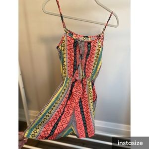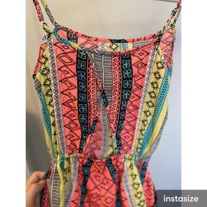 This is an Aztec all in one shorts piece. The beautiful vibrant colours are perfect for a summers day, this also has a lovely back design with a peep slip.