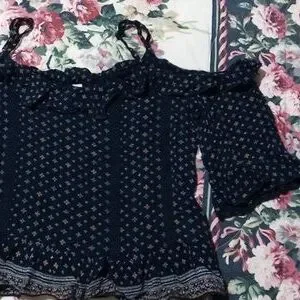 it's a very cute summer out fit. still in a very good condition. navy blue with small print design. very elegant.
