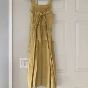 Apron style summer dress in a lovely warm yellow. Hits around the knee