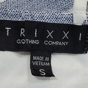 White and denim-blue summer dress with pockets and adjustable straps and back zip. Fully lined. Size small.