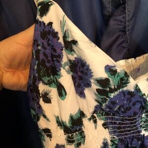 Summery cotton dress, lined, sized exlarge size 18. Spaghetti straps, elastic middle. Real pretty with white sandals and sweater.