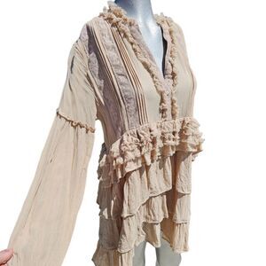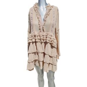 Summer of Love Beige Tiered Long Sleeve Bohemian Neutral Mini Dress